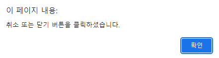 alert("취소 또는 닫기 버튼을 클릭하셨습니다."); 가 실행된다.