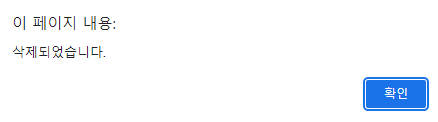 if 함수, if(result == true) 을 통해 alert("삭제되었습니다."); 가 실행된다.